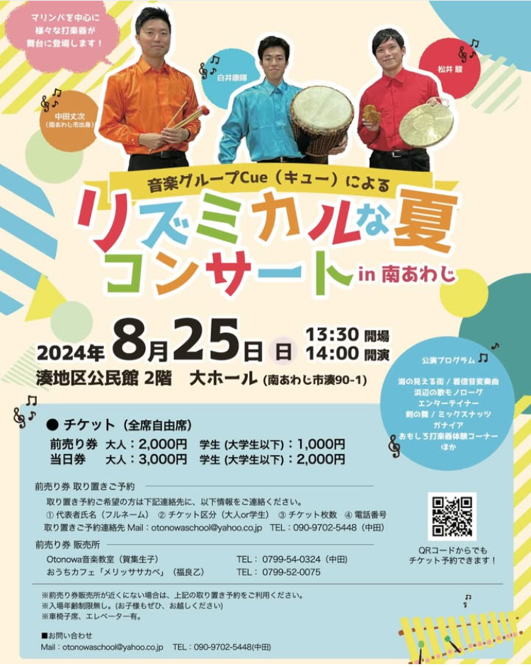 ●編成…マリンバ、様々な打楽器、タップダンス ●主な曲目…ジ・エンターテイナー、A列車で行こう、聖者の行進など●体験コーナーも沢山しました♪南大津小学校の皆様、本当にありがとうございました!